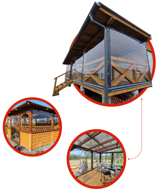 Jako producent plandek wykonujemy transparentne osłony z folii na wymiar chroniące przed wiatrem i deszczem. Idealne do ogródków restauracyjnych i hotelowych, na tarasy oraz do osłony domowego SPA. Sprawdzą się także jako zabudowy altan, pergoli, oranżerii oraz jako ścianki transparentne do stoisk, wiat i magazynów.